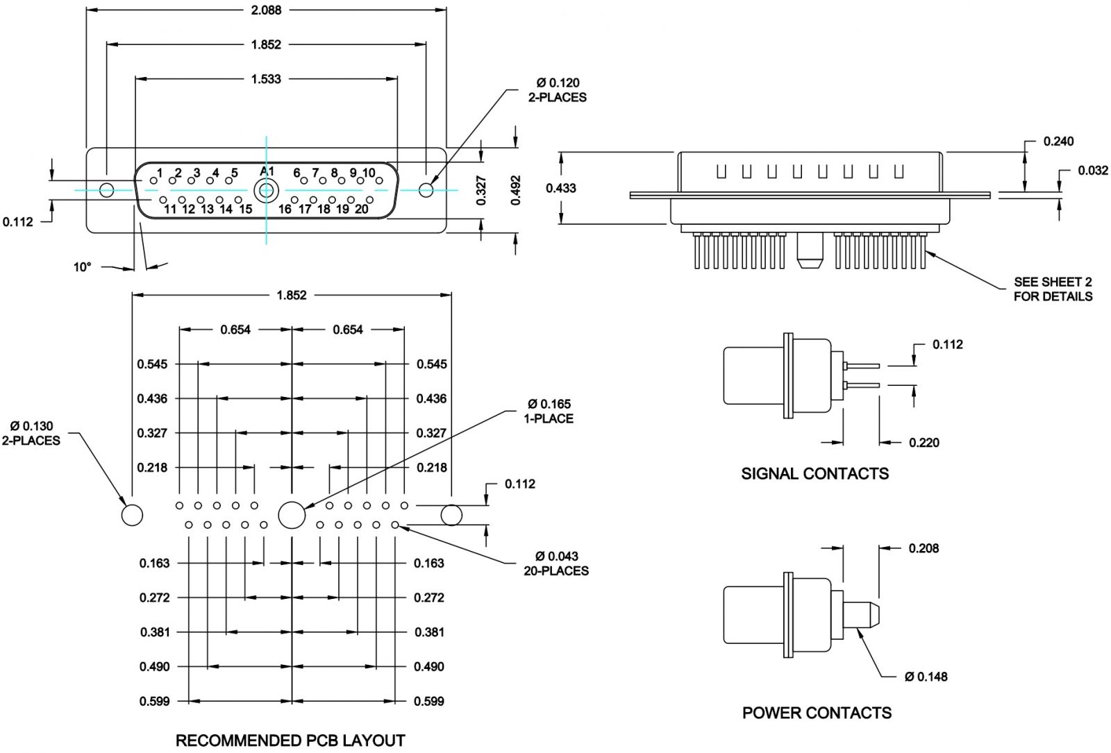 ♦ 20 מגעים SIGNAL לזרם מקסימלי של 5A (כבל 20AWG)