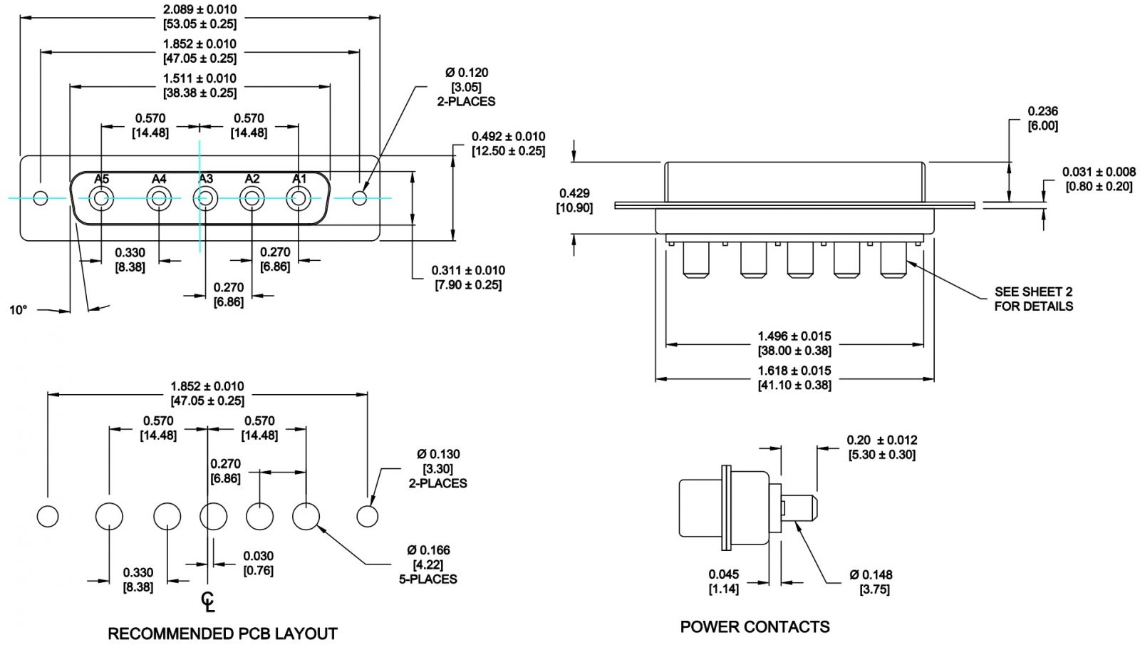 מחבר D-TYPE COMBO IP67 - נקבה למעגל מודפס - 40A - DB-5W5