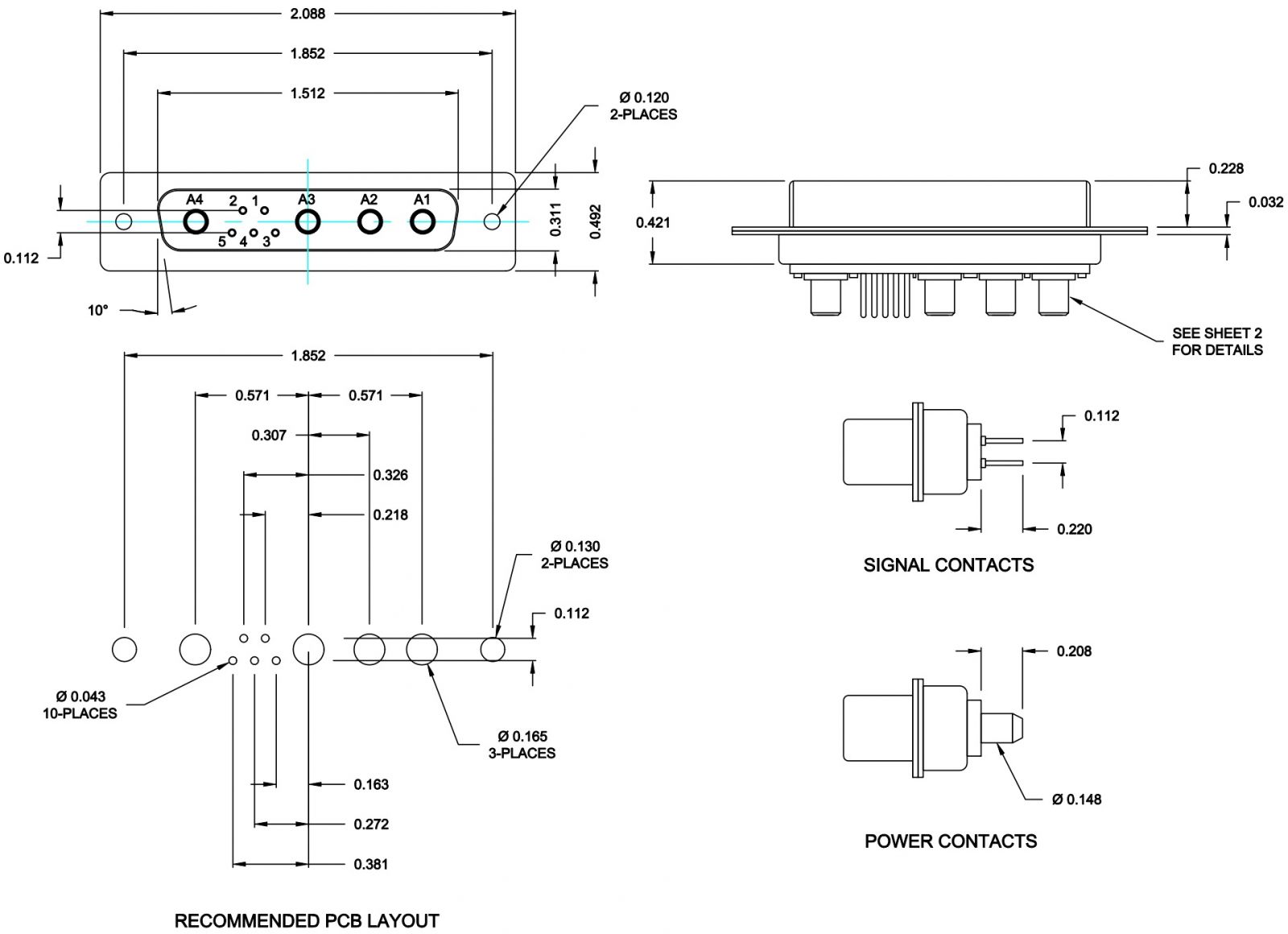מחבר D-TYPE COMBO IP67 - נקבה למעגל מודפס - 40A - DB-9W4
