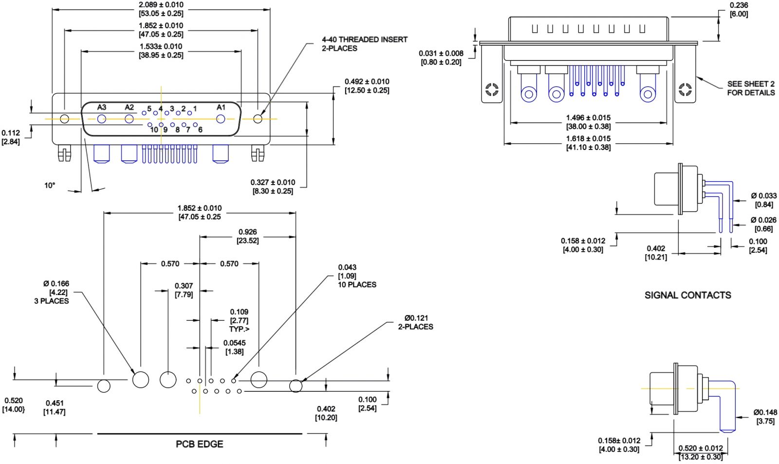 ♦ 10 מגעים SIGNAL לזרם מקסימלי של 5A (כבל 20AWG)