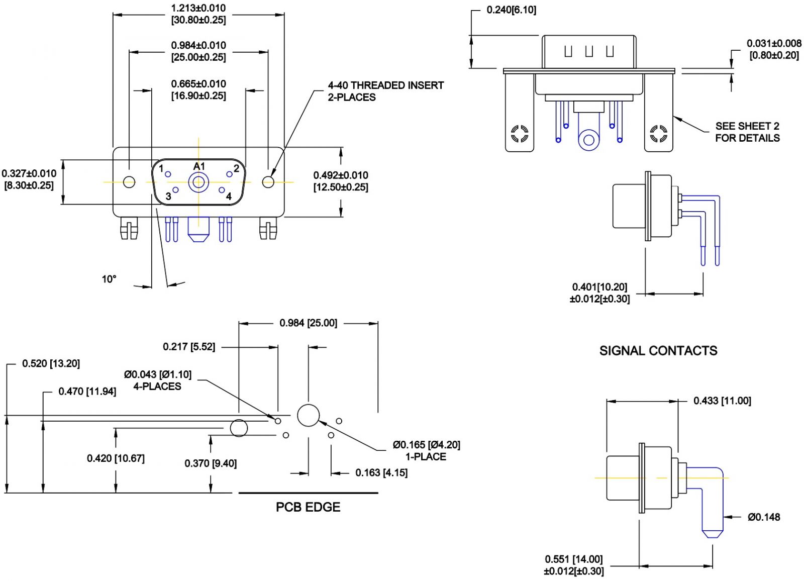 ♦ 4 מגעים SIGNAL לזרם מקסימלי של 5A (כבל 20AWG)