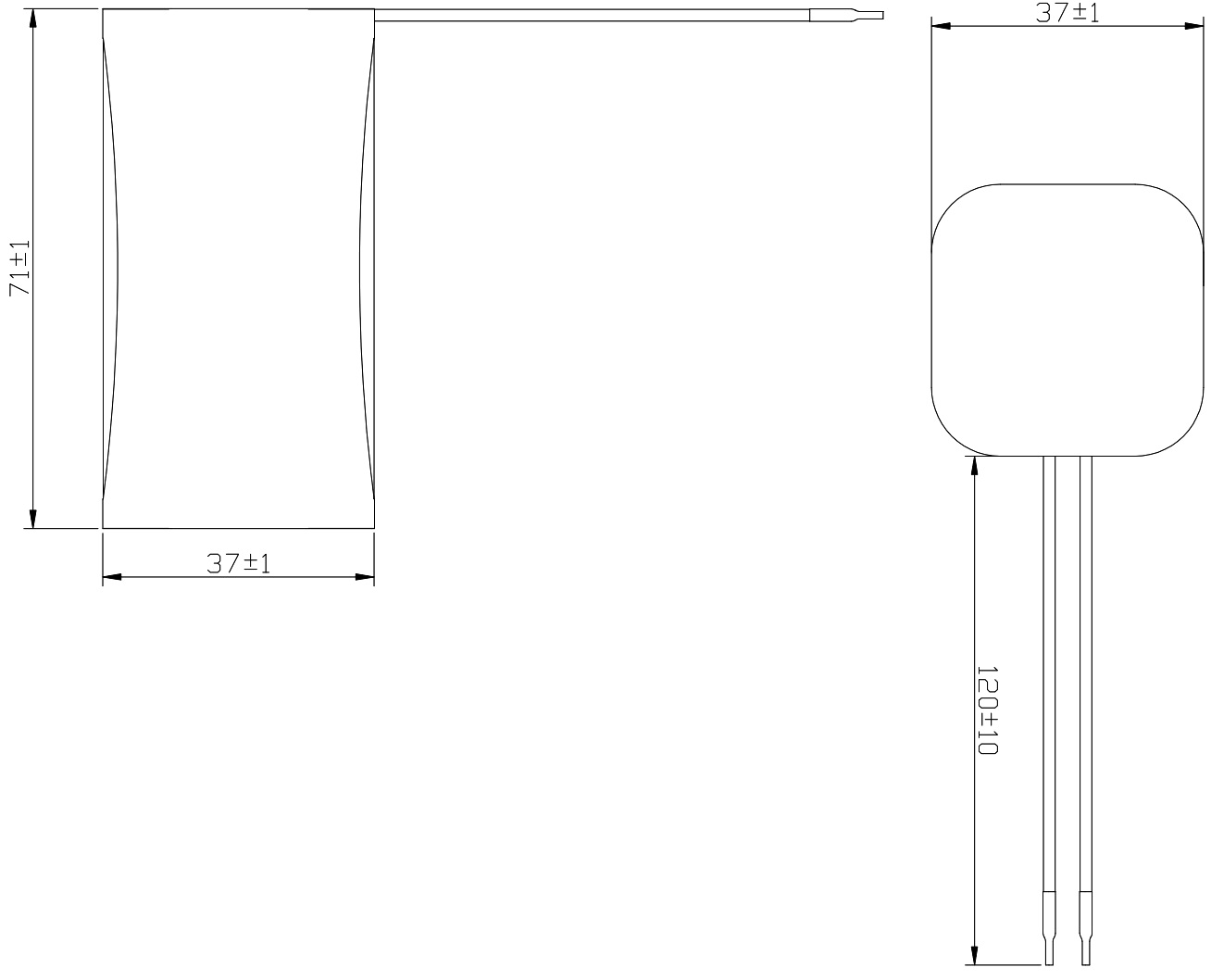 סוללת ליתיום נטענת עם חוטי הלחמה - 7.4V / 5.2AH