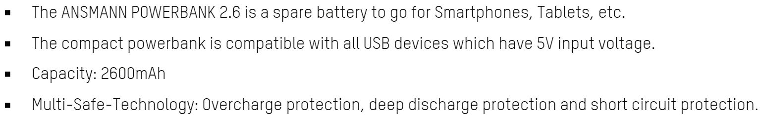 | 0524842 סוללת גיבוי וטעינה חיצונית - ANSMANN POWER BANK 2.6AH | ANSMANN | סוללת גיבוי וטעינה חיצונית - ANSMANN POWER BANK 2.6AH ... סוללות, מצברים ומטענים » סוללות נטענות ומצברים | כמות |