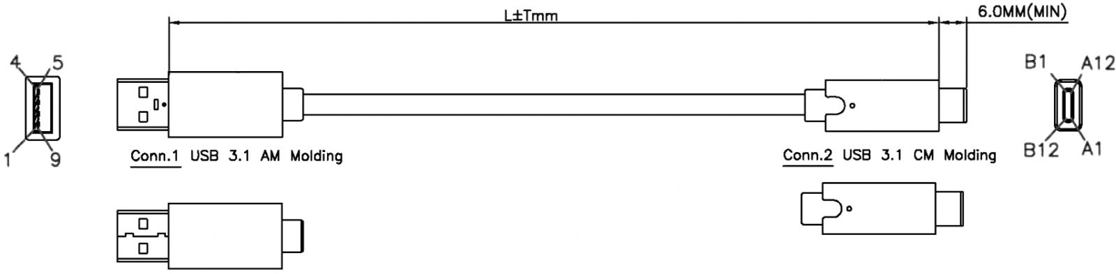 כבל 1M - USB3.1 C(M) ~ USB3.0 A(M) - USB