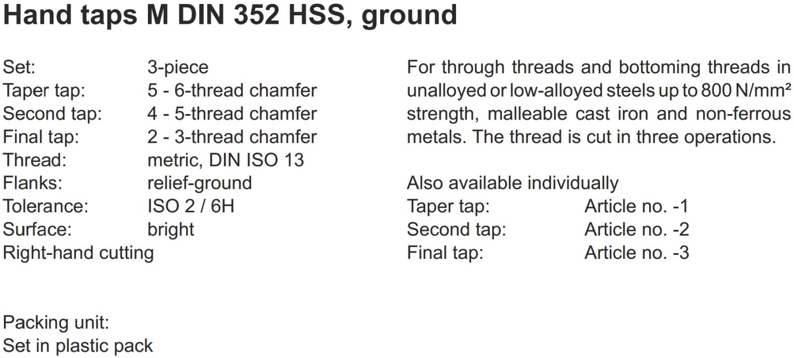 RUKO HAND TAPS M DIN 352 HSS THREAD CUTTING TOOLS RUKO HAND TAPS M DIN 352 HSS THREAD CUTTING TOOLS