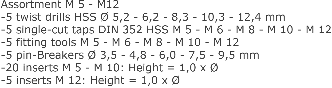| 6601642 ערכה מקצועית לתיקון הברזות - RUKO 244208 - M5 ~ M12 | RUKO | ערכה מקצועית לתיקון הברזות - M5 ~ M12 - קיט 45 יחידות - RUKO 244208 ♦ הערכה כוללת מקדחים , מברזים , ... כלי עבודה ידניים » מברזים , מחרוקות וחולצי ברגים | כמות |