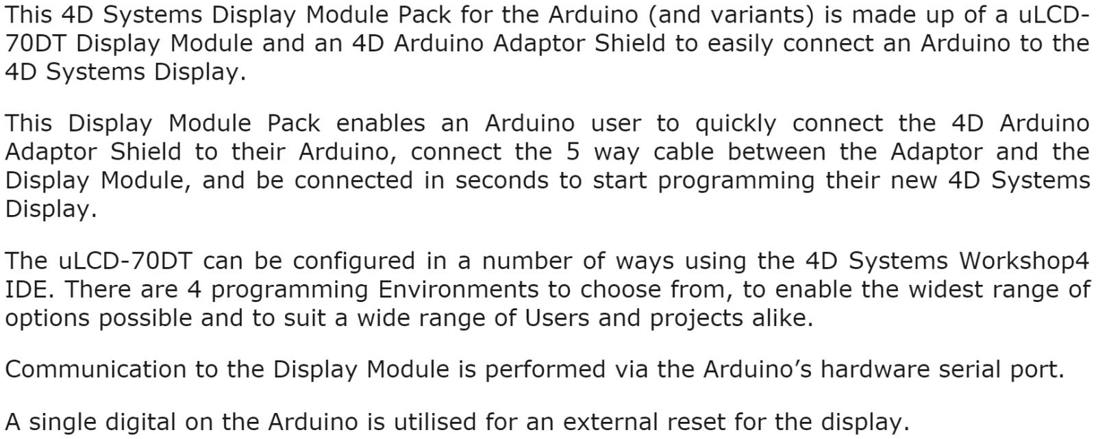 | 9021542 מסך מגע ''7.0 LCD עבור ARDUINO | 4D SYSTEMS | מסך מגע ''7.0 LCD עבור ARDUINO מסופק עם מתאם וכבל התחברות לכרטיס הארדואינו ... מוצרי פיתוח לאלקטרוניקה » מוצרי פיתוח לאלקטרוניקה - ARDUINO | לא ניתן להזמין - אזל המלאי |