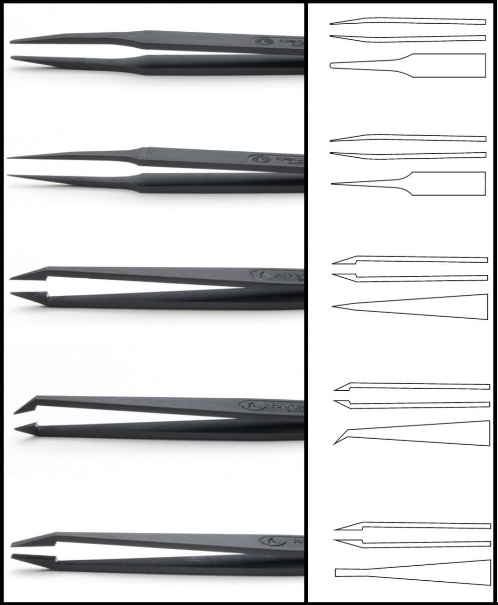 סט פינצטות מקצועיות אנטי סטטיות - גוף פלסטי - IDEAL-TEK K5PICF.IT