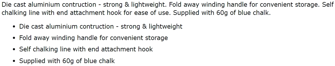 | 2934902 אבקת גיר כחולה לאנך סימון (צוק ליין) - בקבוק 100 גרם | CK TOOLS | אבקת גיר כחולה לאנך סימון (צוק ליין) - בקבוק 100 גרם ... כלי עבודה ידניים » כלי מדידה שונים | כמות |