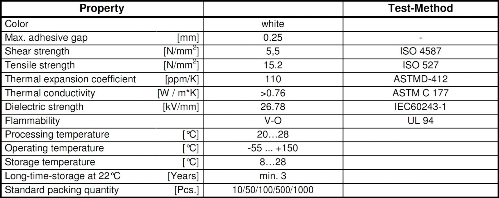 ♦ מתאים להדבקת רכיבי אלקטרוניקה לגופי קירור