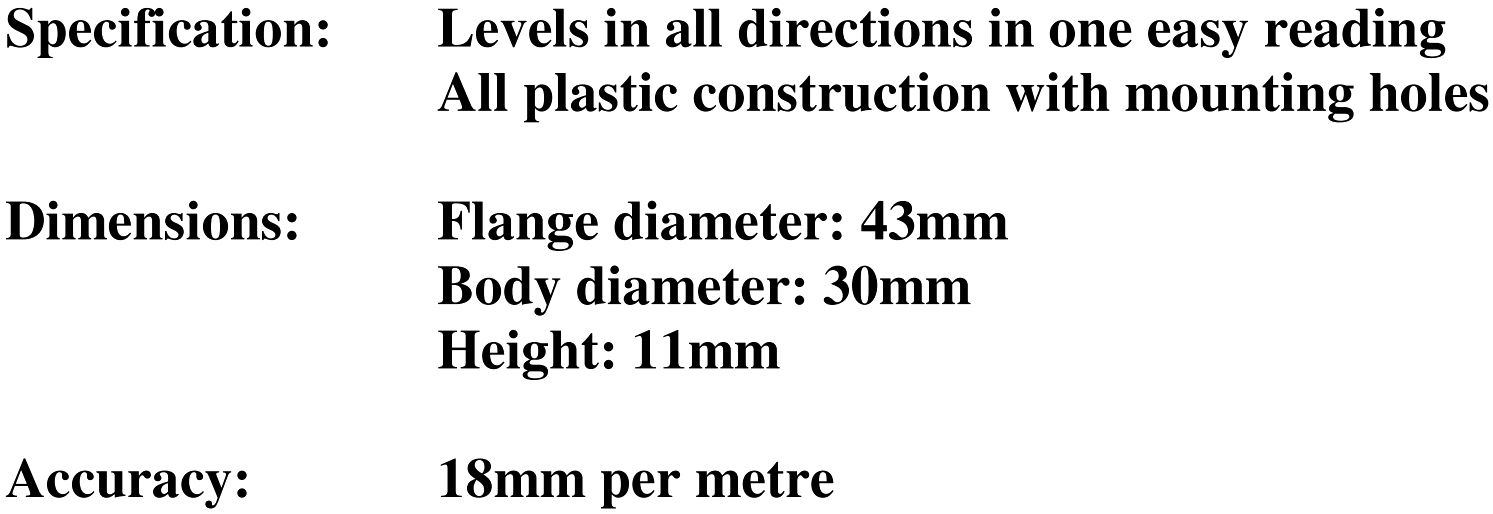| 6051644 פלס בועה (BULLSEYE) - גוף פלסטיק - MULTICOMP PRO | MULTICOMP PRO | פלס בועה (BULLSEYE) - גוף פלסטיק - DURATOOL ♦ מייצב רב כיווני 360º עם קריאה קלה♦ מ... כלי עבודה ידניים » כלי מדידה שונים | כמות |