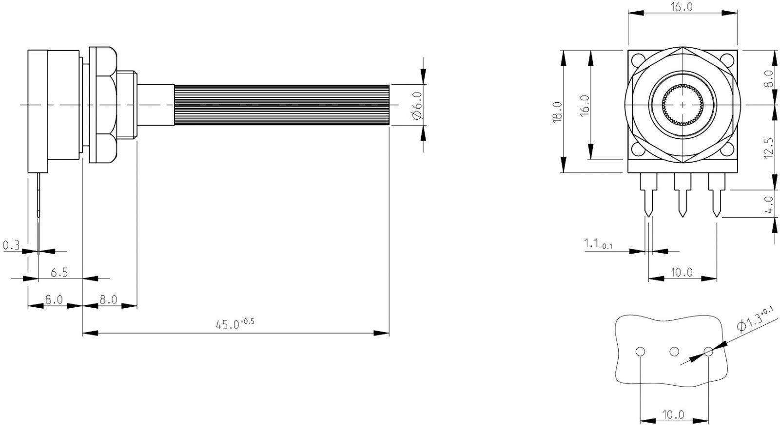 פוטנציומטר חד סיבובי לוגריתמי - TYCO CP16 - 10K