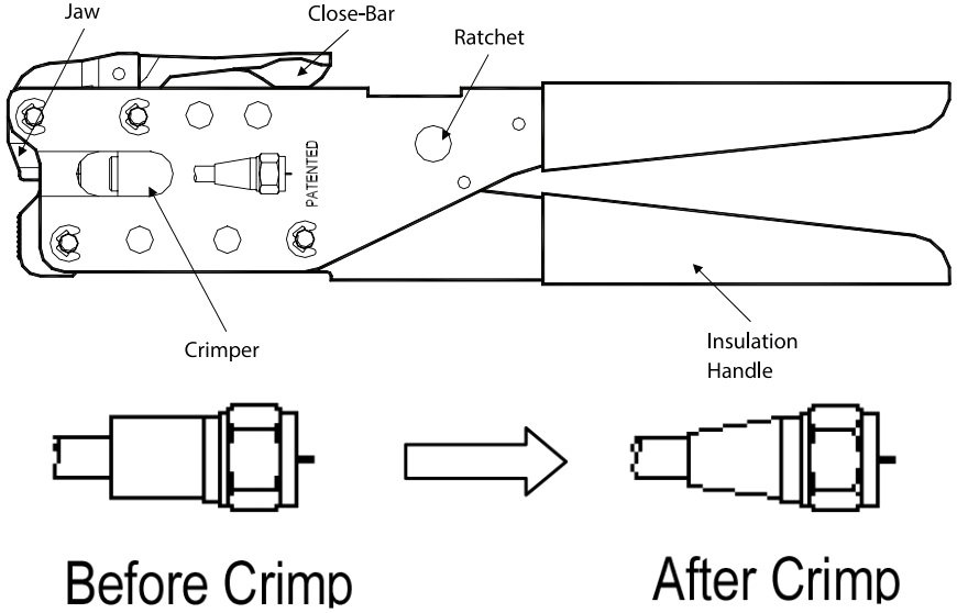 ♦ מתאים ללחיצת מחברי F-TYPE לכבל אנטנה RG6
