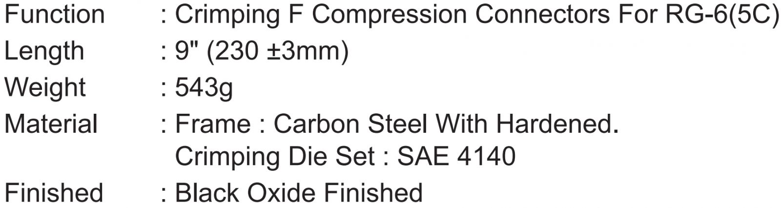 | 9877942 לוחץ רצ'ט מקצועי לכבלים קואקסיאליים RG6 | DURATOOL | לוחץ רצ'ט מקצועי לכבלים קואקסיאליים RG6 ♦ מתאים ללחיצת מחברי F-TYPE לכבל אנטנה RG6&di... כלי עבודה ידניים » לוחצים לכבלים | כמות |