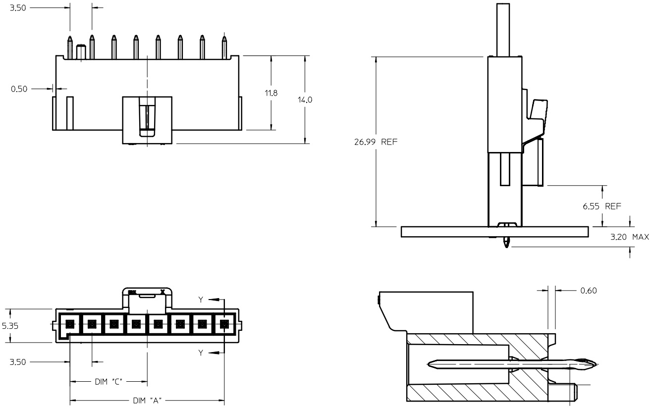 מחבר MOLEX למעגל מודפס - סדרת ULTRA-FIT - זכר 4 מגעים