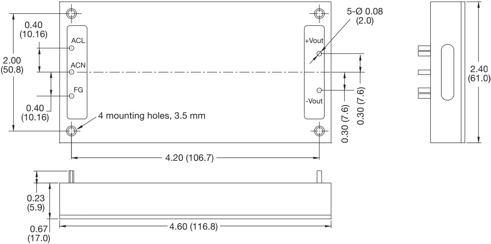 ספק כוח AC/DC למעגל מודפס - 110W - 85V~264V ⇒ 24V / 4.58A