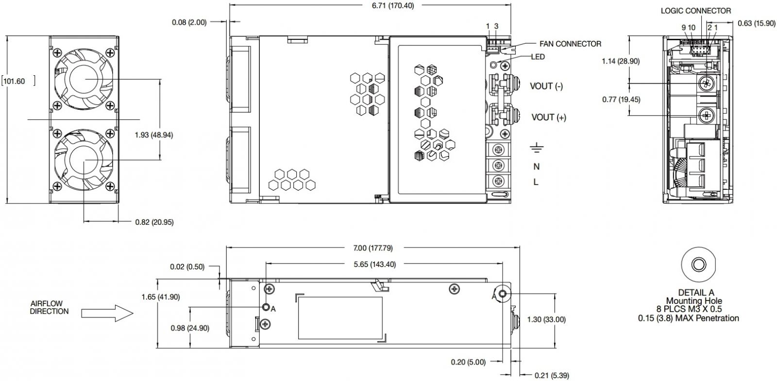 ספק כוח AC/DC לשאסי - 500W - 85V~264V ⇒ 24V / 21A XP POWER