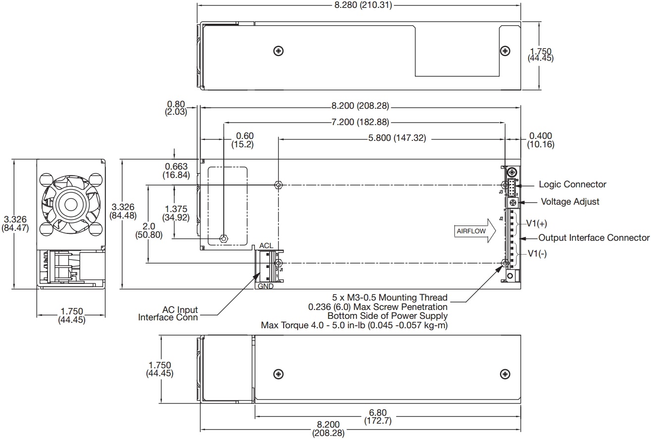 ספק כוח AC/DC לשאסי - 360W - 85V~264V ⇒ 48V / 7.3A XP POWER