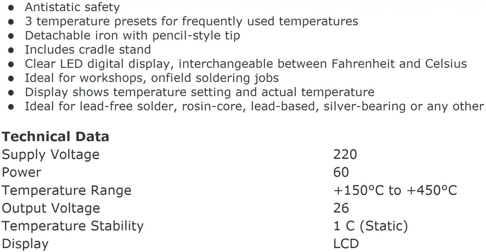 | 1362602 תחנת הלחמה דיגיטלית - TENMA 60W | TENMA | תחנת הלחמה דיגיטלית - TENMA 60W ♦ תחנה אנטיסטטית ESD SAFE♦ טווח טמפרטורות : 15... מלחמים ותחנות הלחמה » מלחמים ותחנות הלחמה | לא ניתן להזמין - אזל המלאי |