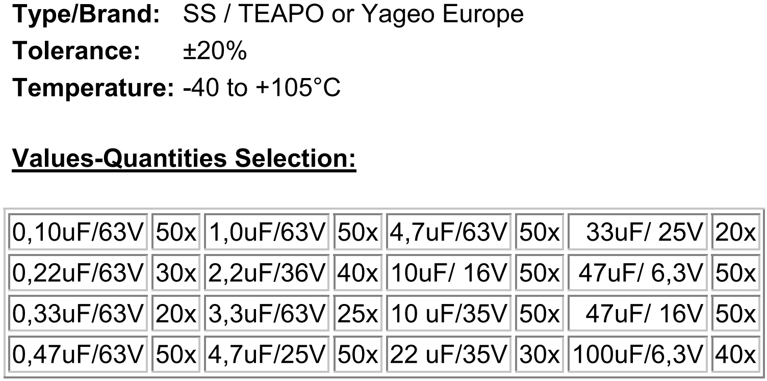 | 5359931 קיט קבלים אלקטרוליטיים - 16 ערכים - 655 יחידות - NOVA CCC-16 | NOVA | קיט קבלים אלקטרוליטיים - 16 ערכים - 655 יחידות - NOVA CCC-16 ♦ מבנה הקבל : RADIAL LEADS♦ אחוז דיו... רכיבי אלקטרוניקה » קבלים לאלקטרוניקה | כמות |