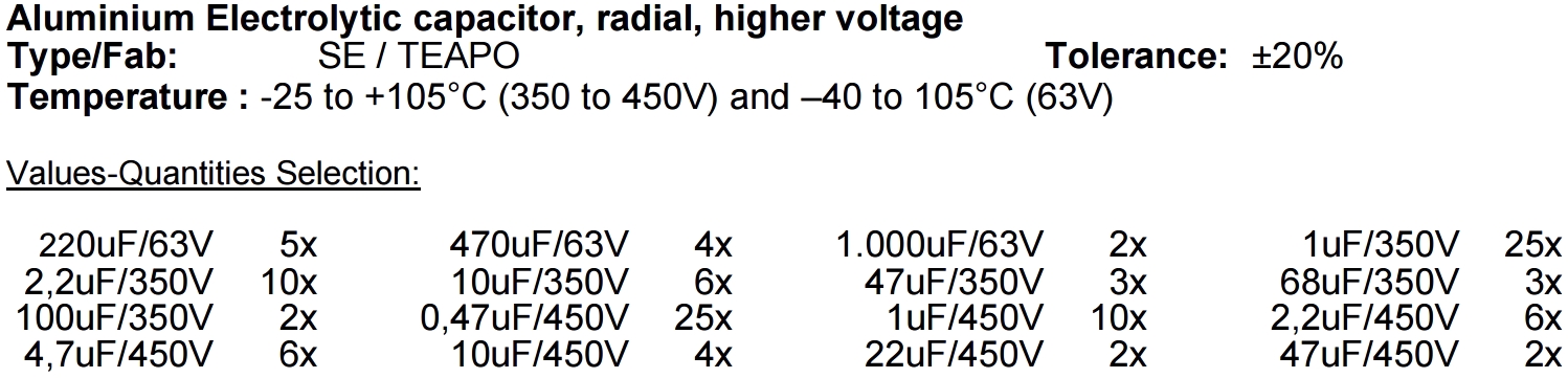 | 0951942 קיט קבלים אלקטרוליטיים - 16 ערכים - 115 יחידות - NOVA CCC-18 | NOVA | קיט קבלים אלקטרוליטיים - 16 ערכים - 115 יחידות - NOVA CCC-18 ♦ מבנה הקבל : RADIAL LEADS HIGH VOLTAGE&di... רכיבי אלקטרוניקה » קבלים לאלקטרוניקה | כמות |