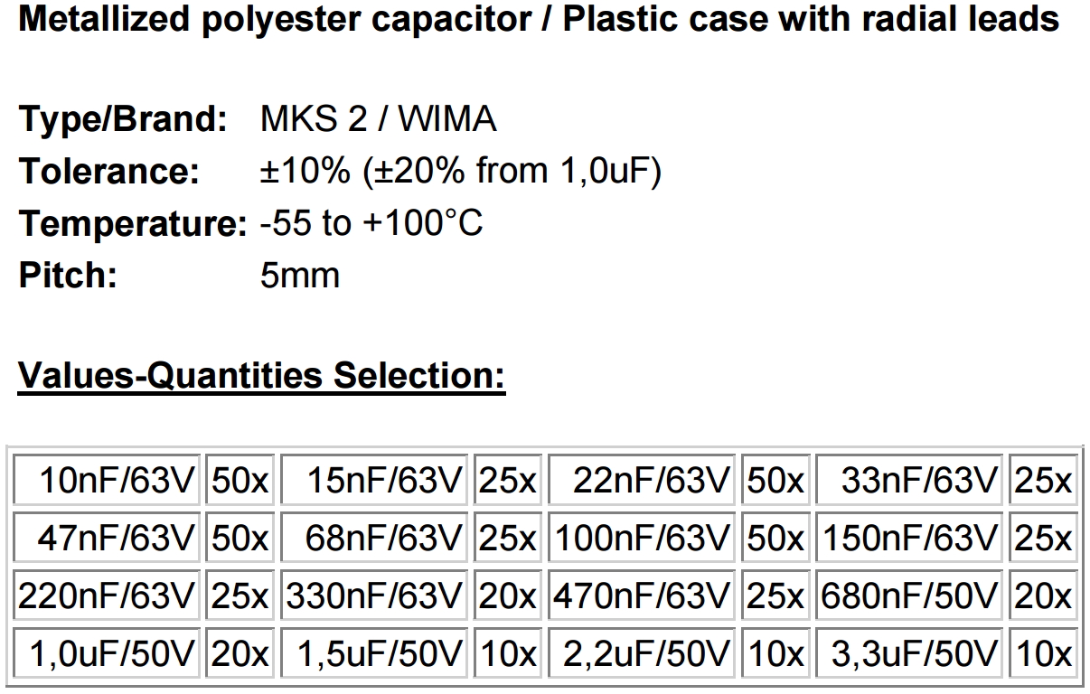 | 5418911 קיט קבלים פוליאסטר - 16 ערכים - 440 יחידות - NOVA CCC-52 | NOVA | קיט קבלים פוליאסטר - 16 ערכים - 440 יחידות - NOVA CCC-52 ♦ מבנה הקבל : RADIAL LEADS 5MM PITCH♦ מת... רכיבי אלקטרוניקה » קבלים לאלקטרוניקה | כמות |