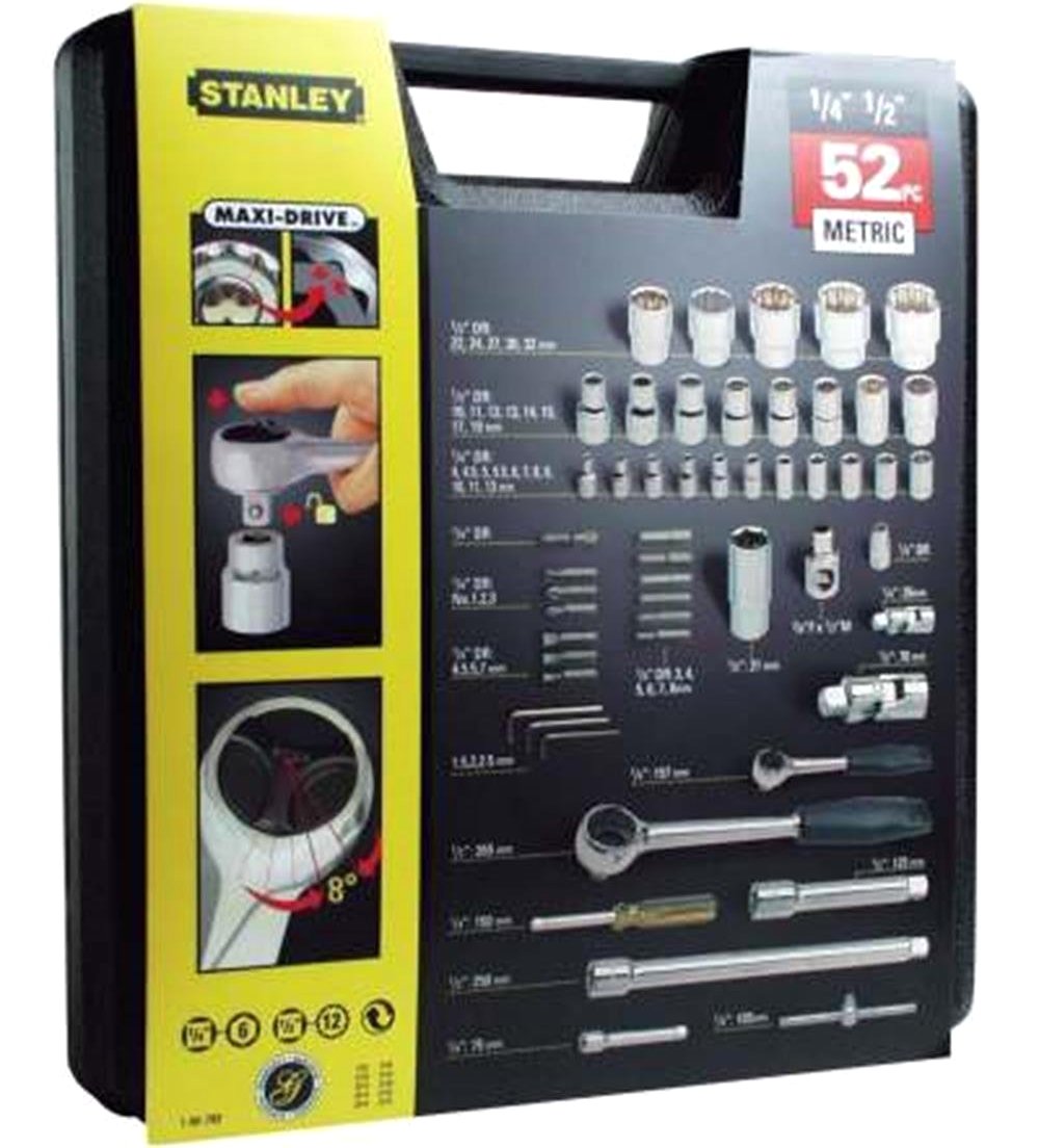 סט בוקסות מקצועי ''1/2 + ''1/4 - 52 יחידות STANLEY ועוד כלי עבודה ידניים. לחצו למיפרט טכני מלא. צרו קשר לייעוץ מקצועי: 04-8520233
