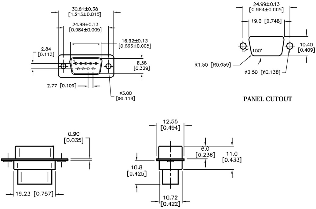 מחבר D-TYPE ללחיצה לכבל - זכר 9 מגעים