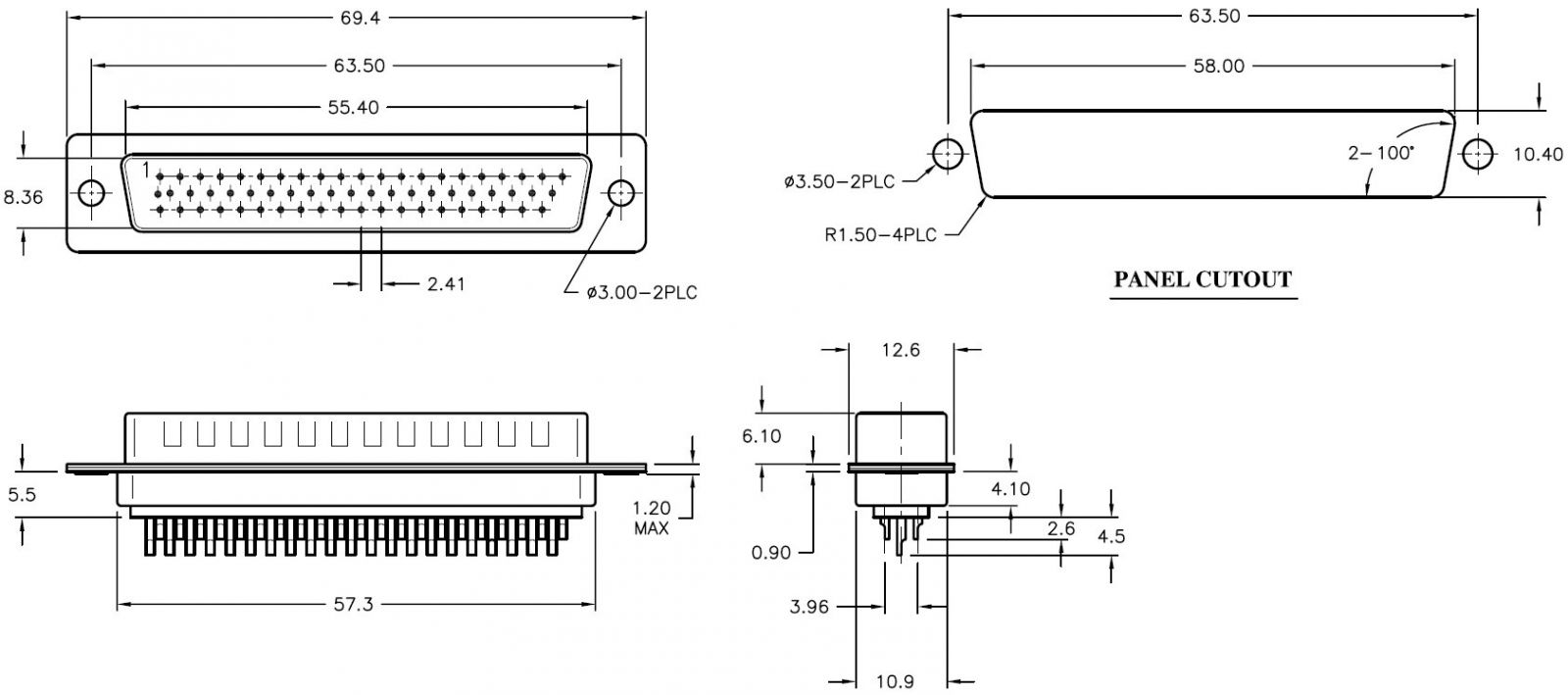 מחבר D-TYPE HIGH DENSITY להלחמה - זכר 62 מגעים