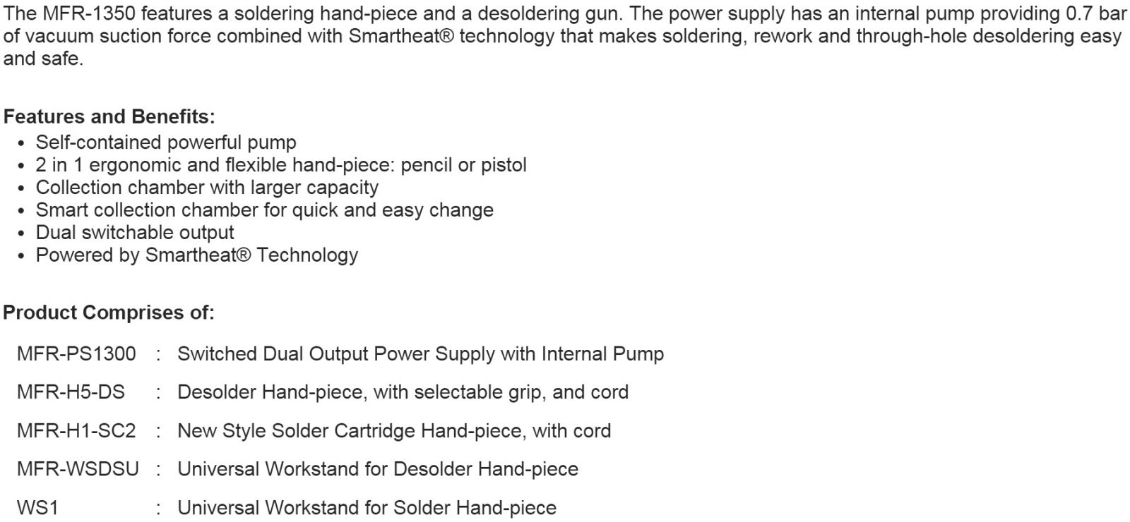 | 5969091 תחנת הלחמה / שאיבת בדיל אנלוגית - METCAL MFR-1351 - 60W | METCAL | תחנת הלחמה / שאיבת בדיל אנלוגית - METCAL MFR-1351 - 60W ♦ בקרת טמפרטורה בטכנולוגיית SMARTHEAT... מלחמים ותחנות הלחמה » מלחמים ותחנות הלחמה | כמות |
