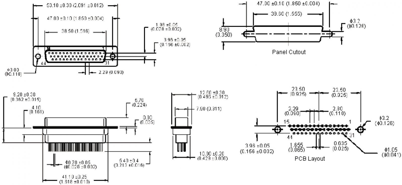 מחבר D-TYPE HIGH DENSITY למעגל מודפס - נקבה 44 מגעים