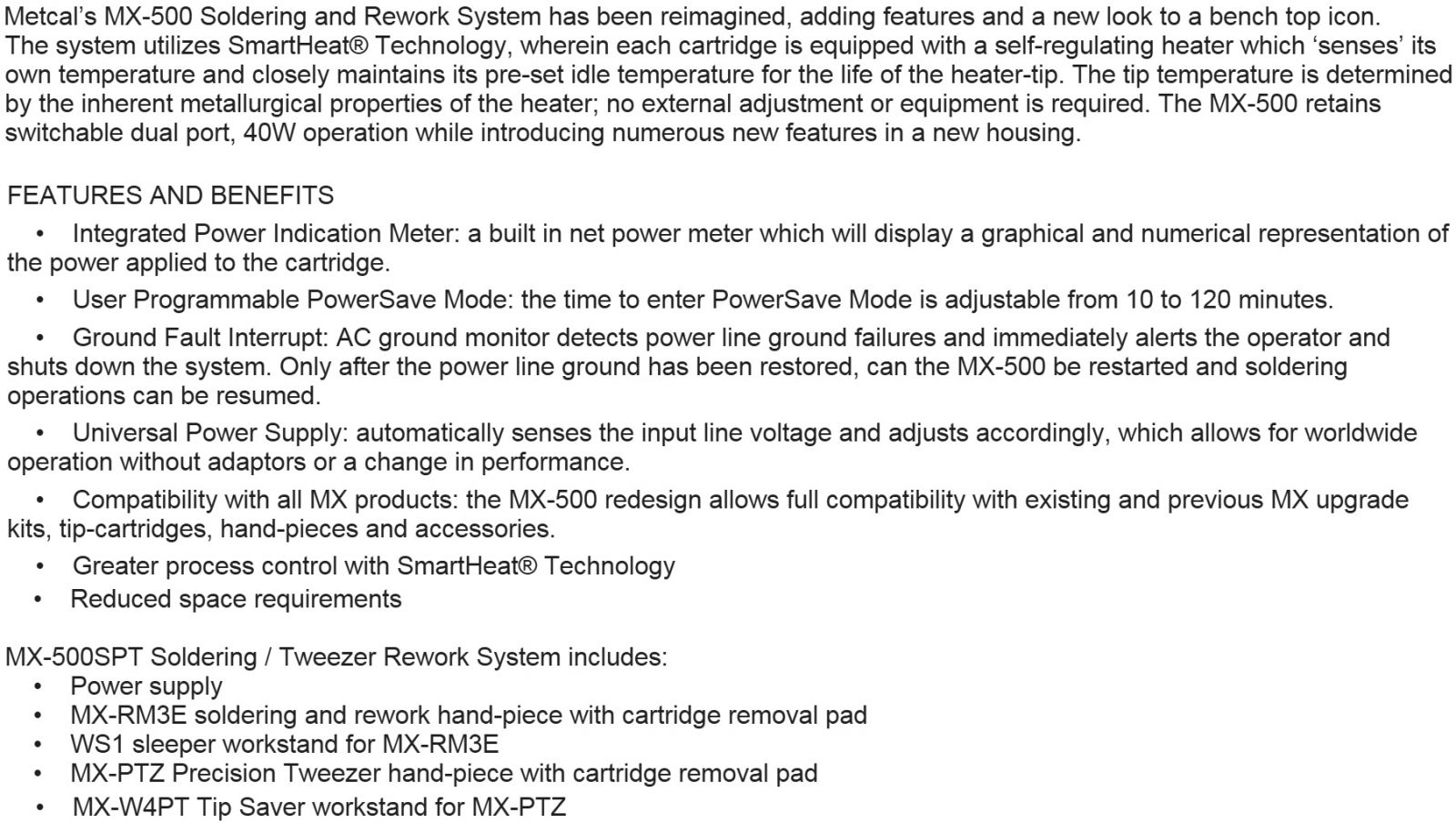 | 6033732 תחנת הלחמה דיגיטלית / פינצטה חמה - METCAL MX-500SPT - 40W | METCAL | תחנת הלחמה דיגיטלית / פינצטה חמה - METCAL MX-500SPT - 40W ♦ בקרת טמפרטורה בטכנולוגיית SMARTHEAT♦ ... מלחמים ותחנות הלחמה » מלחמים ותחנות הלחמה | כמות |