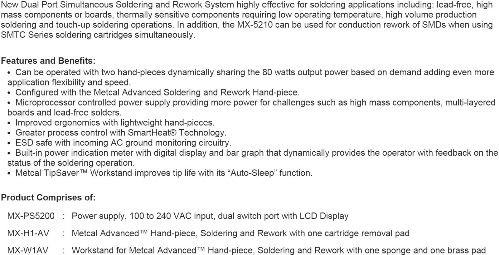 | 2634842 תחנת הלחמה דיגיטלית - METCAL MX-5210 - 80W | METCAL | תחנת הלחמה דיגיטלית - METCAL MX-5210 - 80W ♦ בקרת טמפרטורה בטכנולוגיית SMARTHEAT♦ תצוגת אינדיקציה... מלחמים ותחנות הלחמה » מלחמים ותחנות הלחמה | כמות |