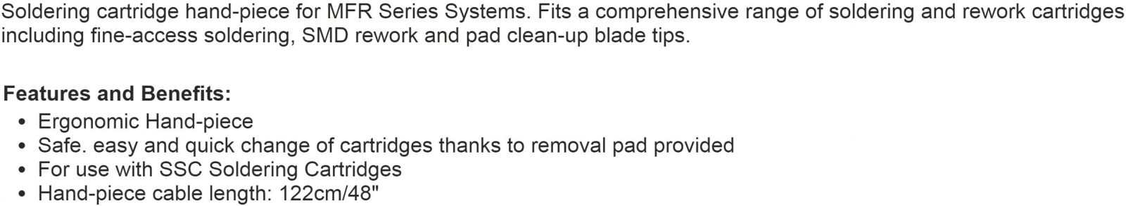 | 3165922 ידית הלחמה - MECTAL MFR-H6-SSC | METCAL | ידית הלחמה - MECTAL MFR-H6-SSC ♦ עבור תחנות הלחמה מסדרת MFR-1300♦ מתאימה לראשי הלחמה מסדרת SSC&... מלחמים ותחנות הלחמה » מלחמים ותחנות הלחמה | כמות |