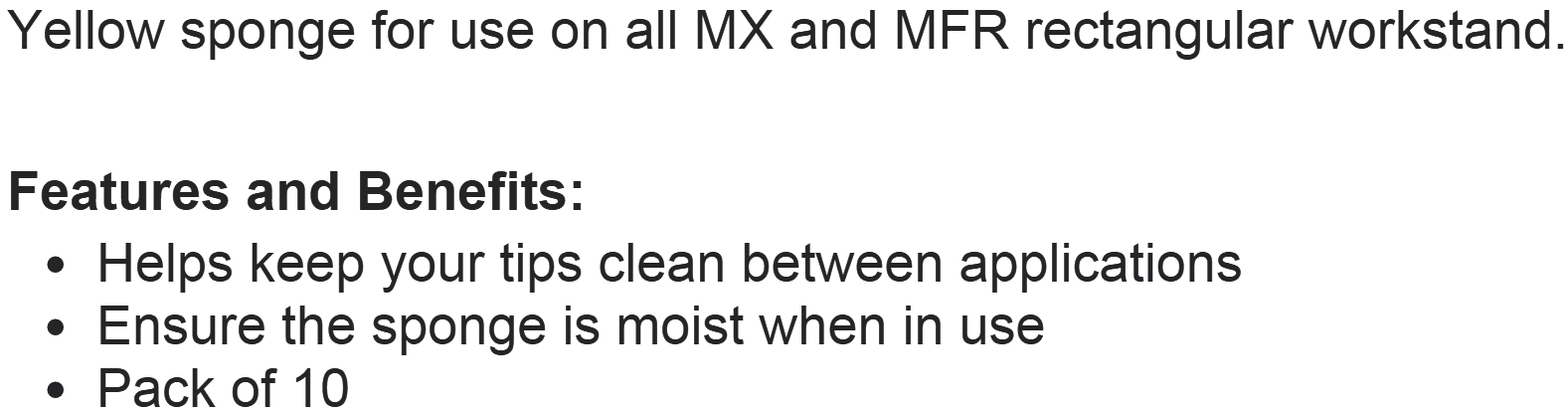 | 3840594 ספוג לניקוי ראשי הלחמה - MECTAL AC-YS3 | METCAL | ספוג לניקוי ראשי הלחמה - MECTAL AC-YS3 ♦ מתאים לתחנות הלחמה מסדרות MX , MFR לקטלוג O... מלחמים ותחנות הלחמה » מלחמים ותחנות הלחמה | כמות | |