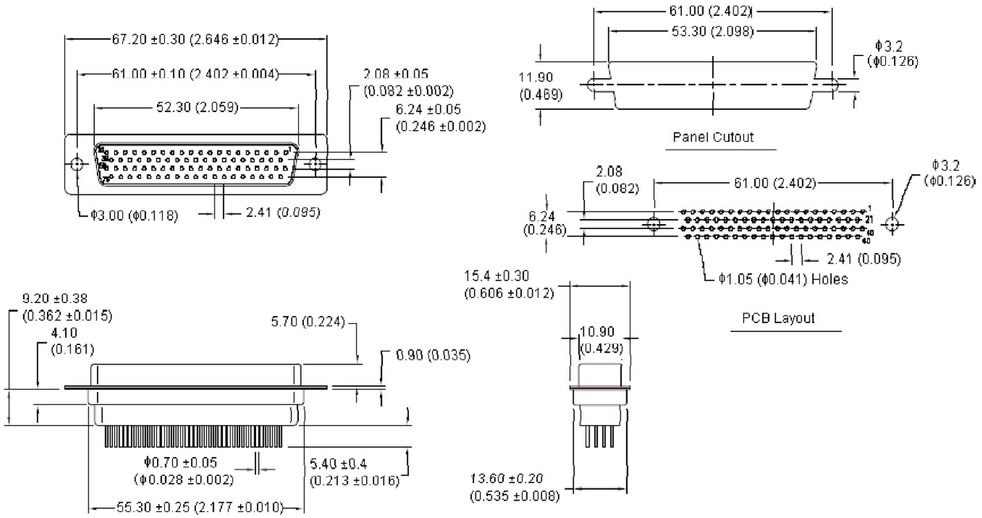 מחבר D-TYPE HIGH DENSITY למעגל מודפס - נקבה 78 מגעים