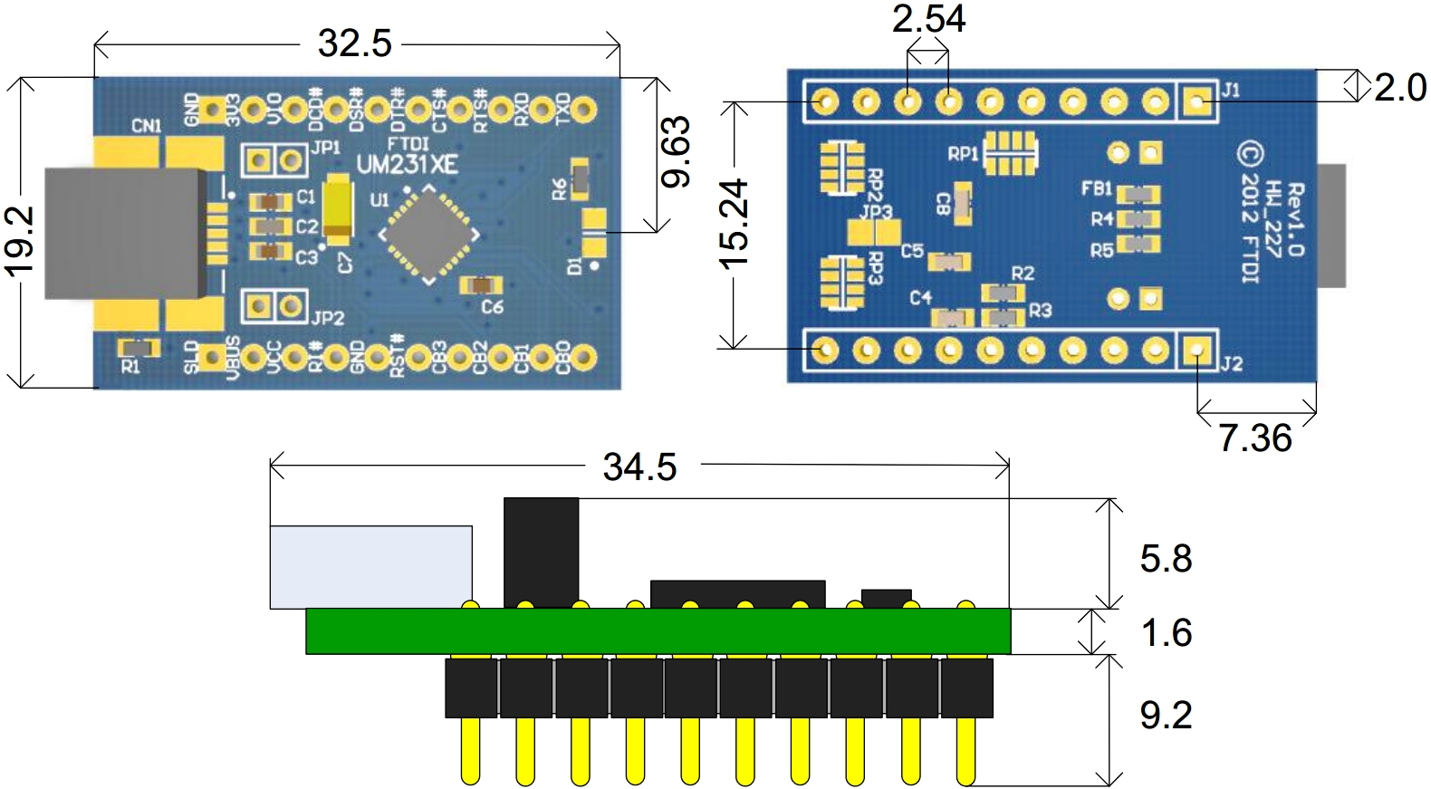 מודול פיתוח - UMFT231XE-01 , USB ⇒ UART