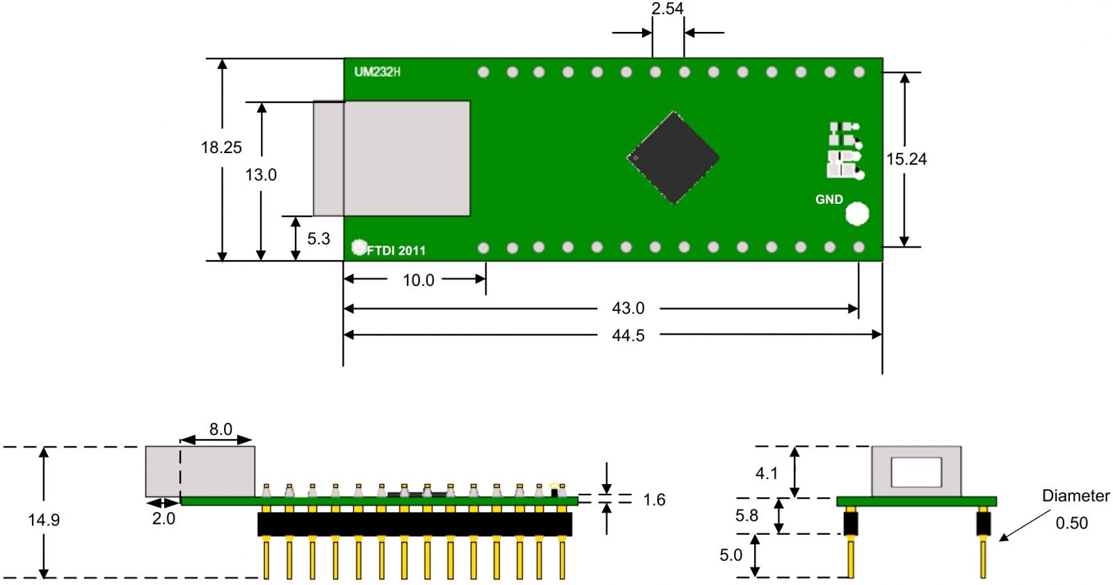 מודול פיתוח - UM232H , USB ⇒ SERIAL