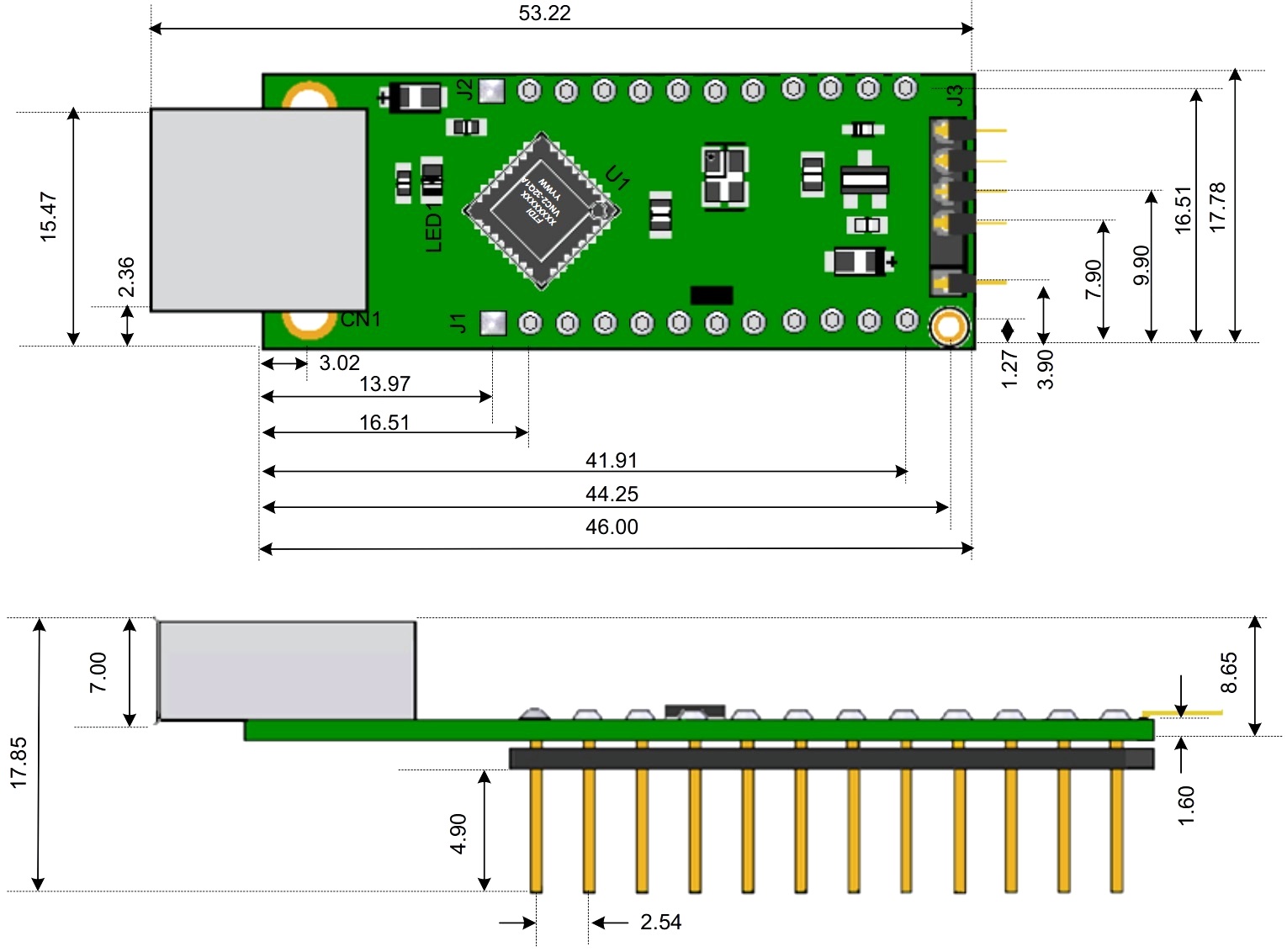 מודול פיתוח - V2DIP1-32 , USB HOST CONTROLLER , VNC2