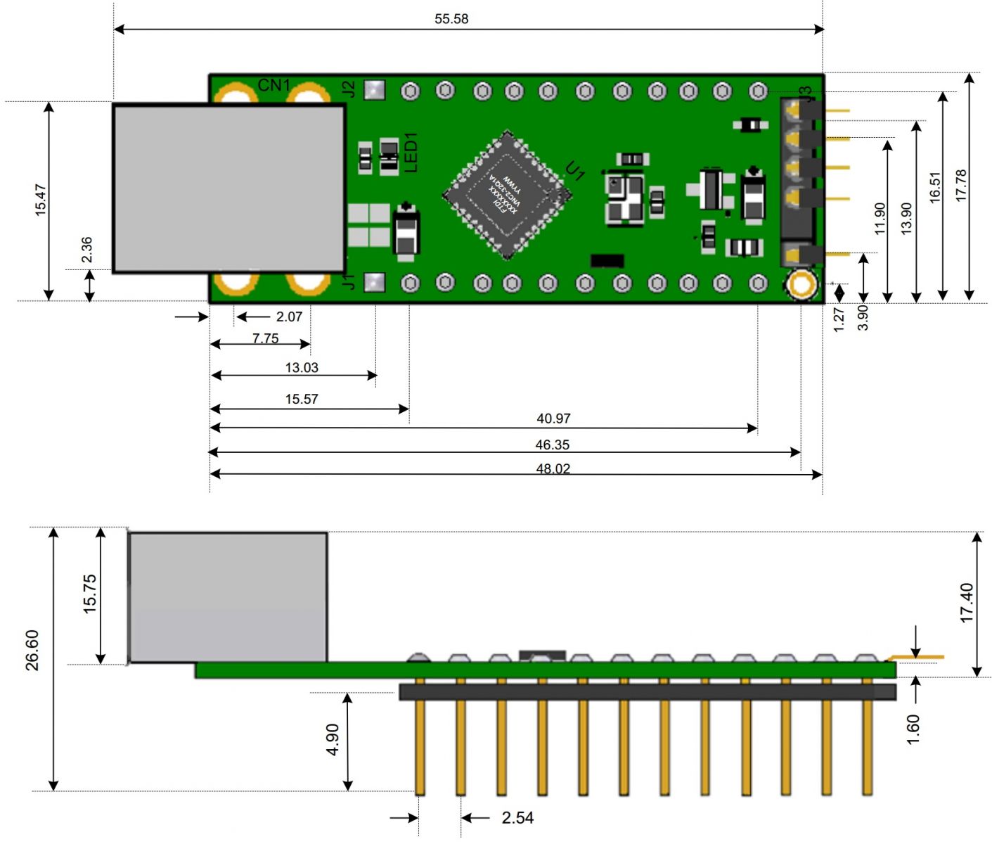 מודול פיתוח - V2DIP2-32 , USB HOST CONTROLLER , VNC2