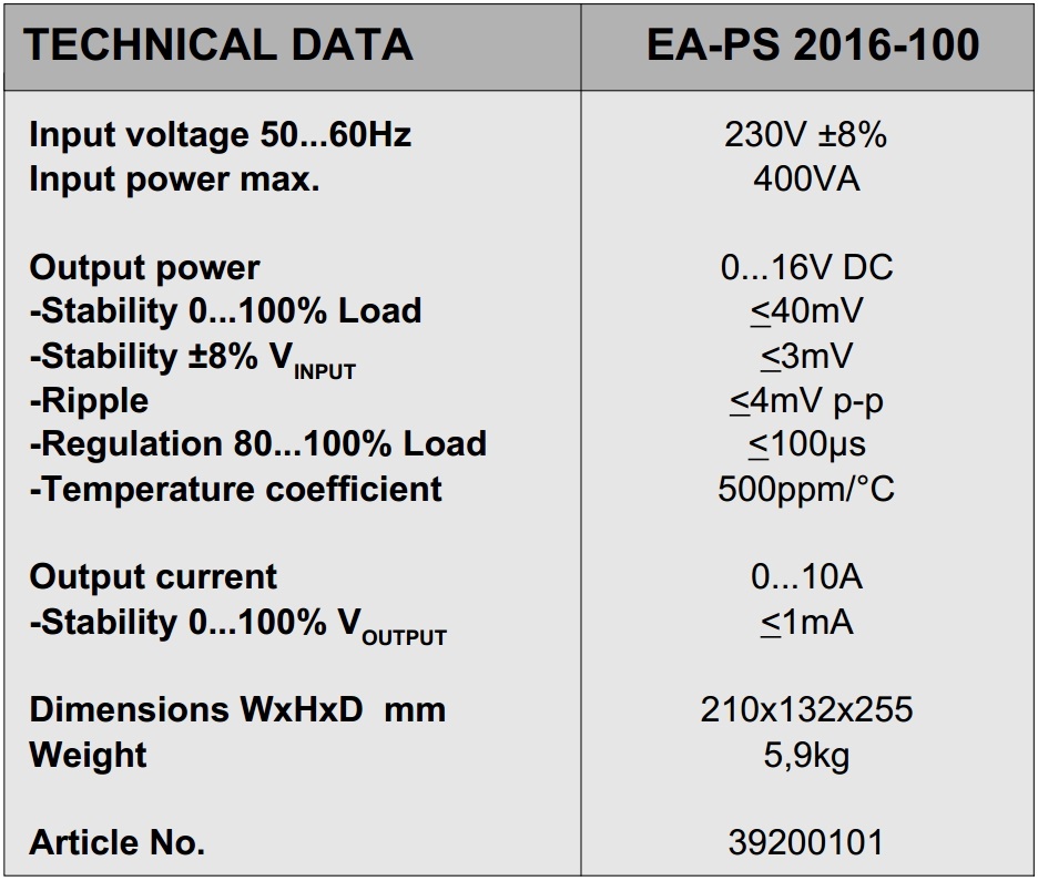 ספק כוח מעבדתי - ADJ - יציאה אחת - (0-16V / 0-10A) ELEKTRO AUTOMATIK ועוד ציוד בדיקה ומכשירי מדידה. לחצו למיפרט טכני מלא. צרו קשר לייעוץ מקצועי: 04-8520233