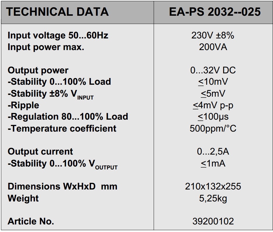ספק כוח מעבדתי - ADJ - יציאה אחת - (0-32V / 0-2.5A) ELEKTRO AUTOMATIK ועוד ציוד בדיקה ומכשירי מדידה. לחצו למיפרט טכני מלא. צרו קשר לייעוץ מקצועי: 04-8520233