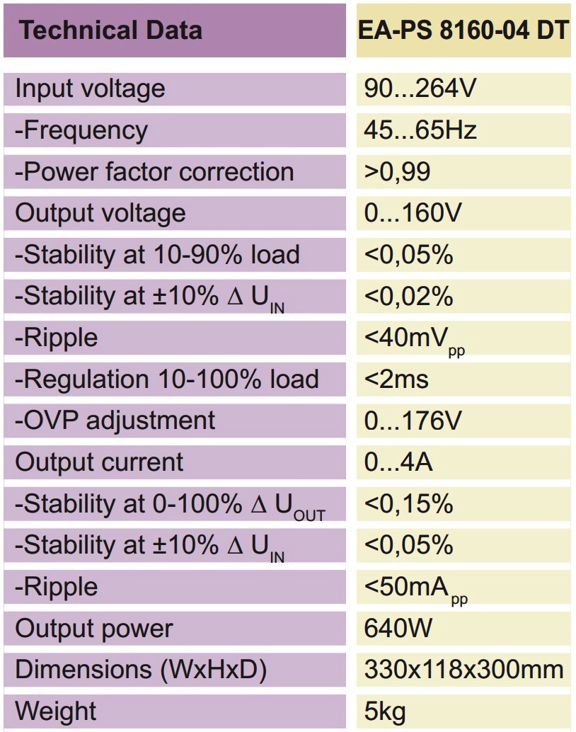 ספק כוח מעבדתי - PROG - יציאה אחת - (0-160V / 0-4A) ELEKTRO AUTOMATIK