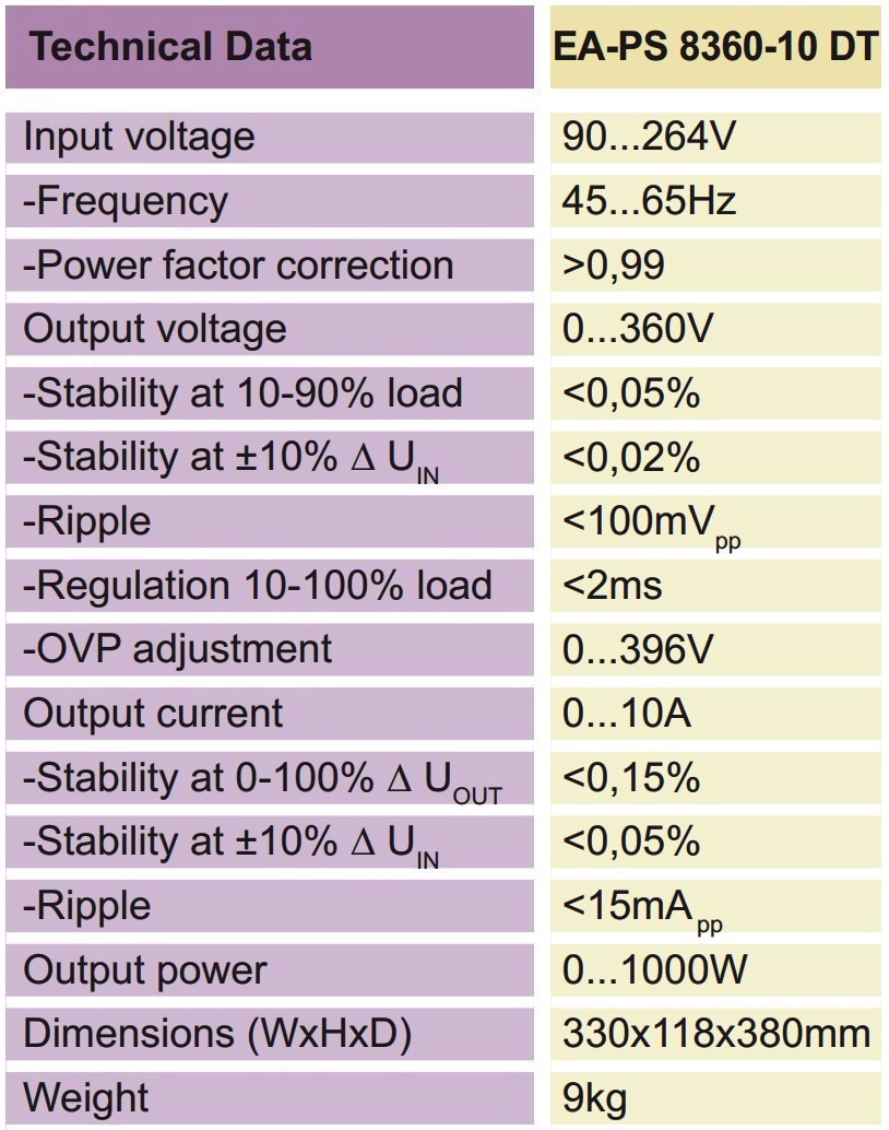 ספק כוח מעבדתי - PROG - יציאה אחת - (0-360V / 0-10A) ELEKTRO AUTOMATIK
