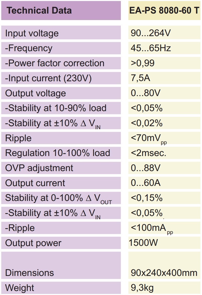 ספק כוח מעבדתי - PROG - יציאה אחת - (0-80V / 0-60A) ELEKTRO AUTOMATIK
