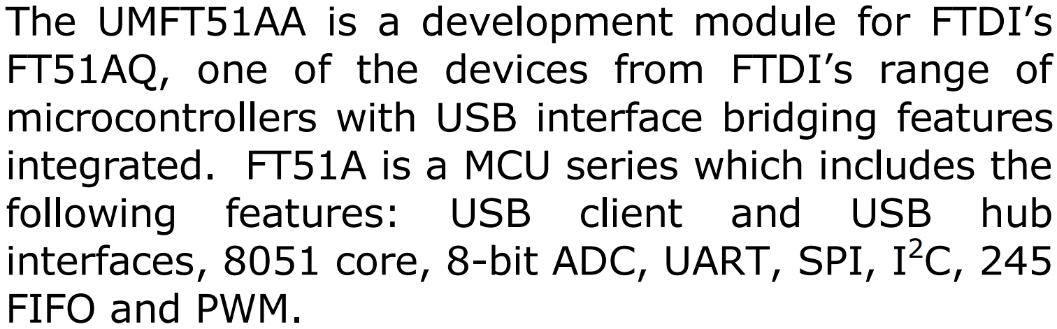 | 9170252 מודול פיתוח - UMFT51AA , USB ⇒ MCU , FT51A | FTDI | מודול פיתוח - UMFT51AA , USB ⇒ MCU , FT51A ... מוצרי פיתוח לאלקטרוניקה » מוצרי פיתוח לאלקטרוניקה - FTDI | לא ניתן להזמין - אזל המלאי |