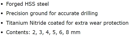| 6589723 סט מקדחים מקצועי למתכת - 6 יחידות - CK TOOLS T3293 | CK TOOLS | סט מקדחים מקצועי למתכת - 6 יחידות - CK TOOLS T3293 ♦ פלדת HSS איכותית וחזקה♦ ציפוי טיטני... כלי עבודה נטענים / חשמליים » מקדחים / ביטים / כרסמים | כמות |