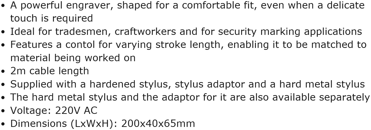| 9356697 עפרון חריטה חשמלי - SIGNOGRAPH 25 SET | BRENNENSTUHL | עפרון חריטה חשמלי - SIGNOGRAPH 25 SET ♦ מבנה ארגונומי מקנה אחיזה יציבה ונוחה♦ מנוע עוצמת... כלי עבודה נטענים / חשמליים » משחזות ציר ומולטיטולס | כמות | |
