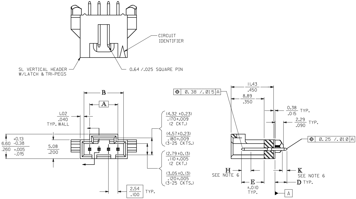 מחבר MOLEX להלחמה למעגל מודפס - סדרת SL - זכר 18 מגעים