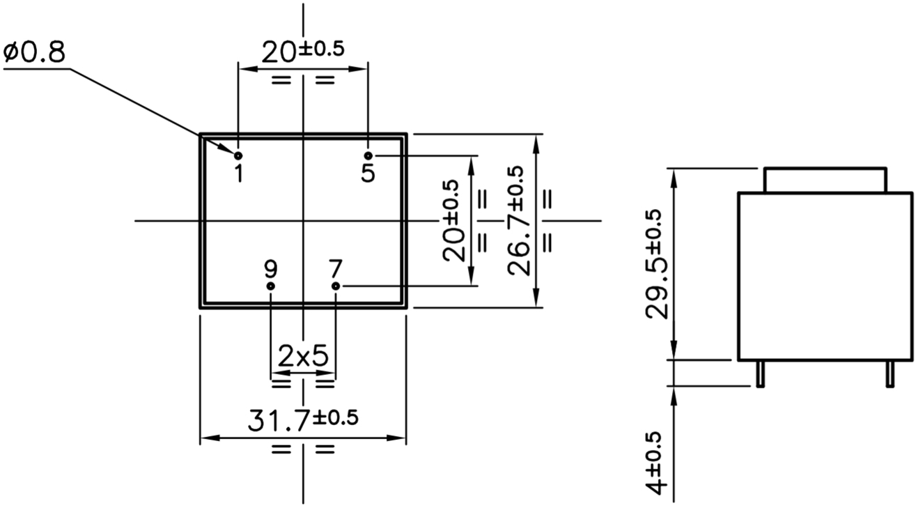 שנאי יצוק למעגל מודפס - 230V ⇒ 24V - 96MA / 2.3VA